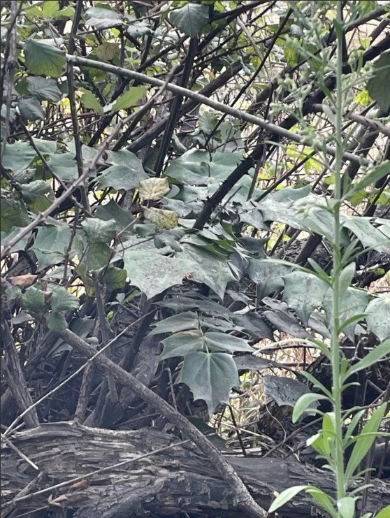 Mahonia seedlings beside a kawakawa