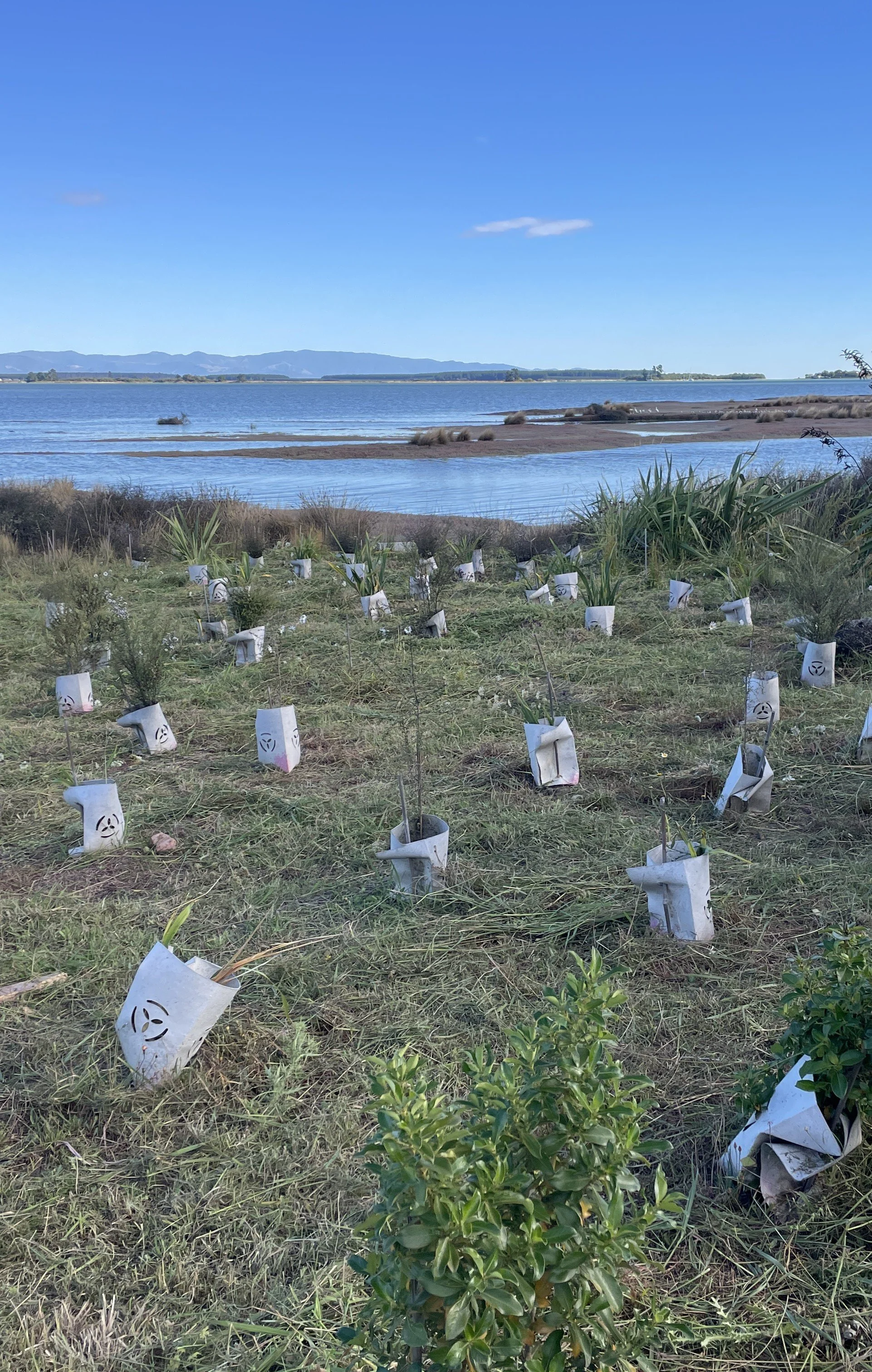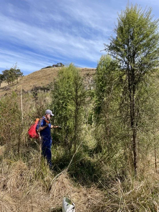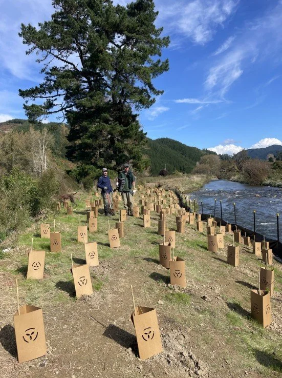 We started on a battered bank by the Wakapuka River. The idea with this area was to reduce the undercutting of the exisiting bank. This undercutting was occuring during flood events. The plan is that by softening the batter of the bank and planting densely with Carex secta and Phormium tenax, we will reduce erosion.